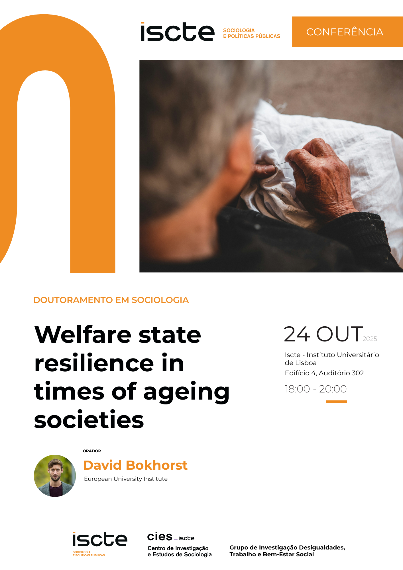 Decorre no dia 24 de outubro de 2025, a partir das 18h00, a conferência no âmbito do Doutoramento em Sociologia, intitulada "Welfare state resilience in times of ageing societies", no Iscte - Conhecimento e Inovação.