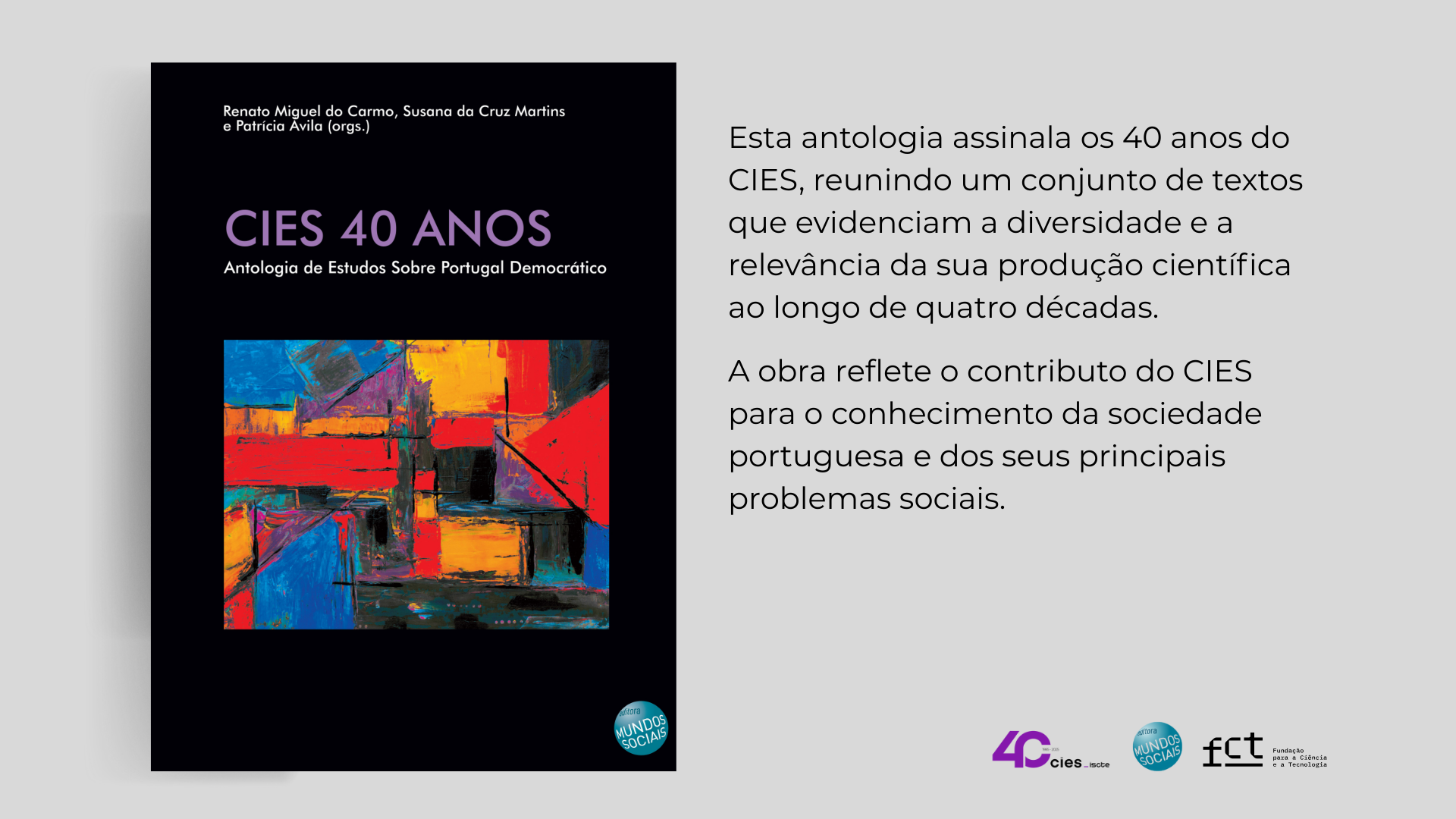 O Centro de Investigação e Estudos de Sociologia (CIES) celebra quatro décadas de atividade com o lançamento de uma antologia que reúne textos representativos da sua produção científica ao longo de 40 anos. A publicação destaca a diversidade temática e a relevância das investigações desenvolvidas por diferentes gerações de investigadores/as que integraram e integram o Centro.