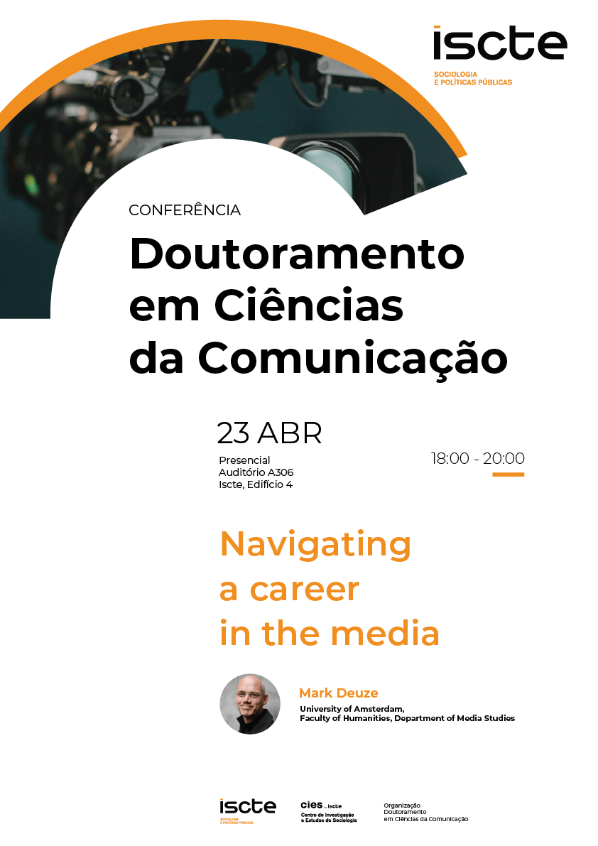 A Conferência Doutoral em Ciências da Comunicação tem como tópico "Navigating a career in the media" e decorre no próximo dia 23 de abril, a partir das 18h00 no Iscte - Instituto Universitário de Lisboa.