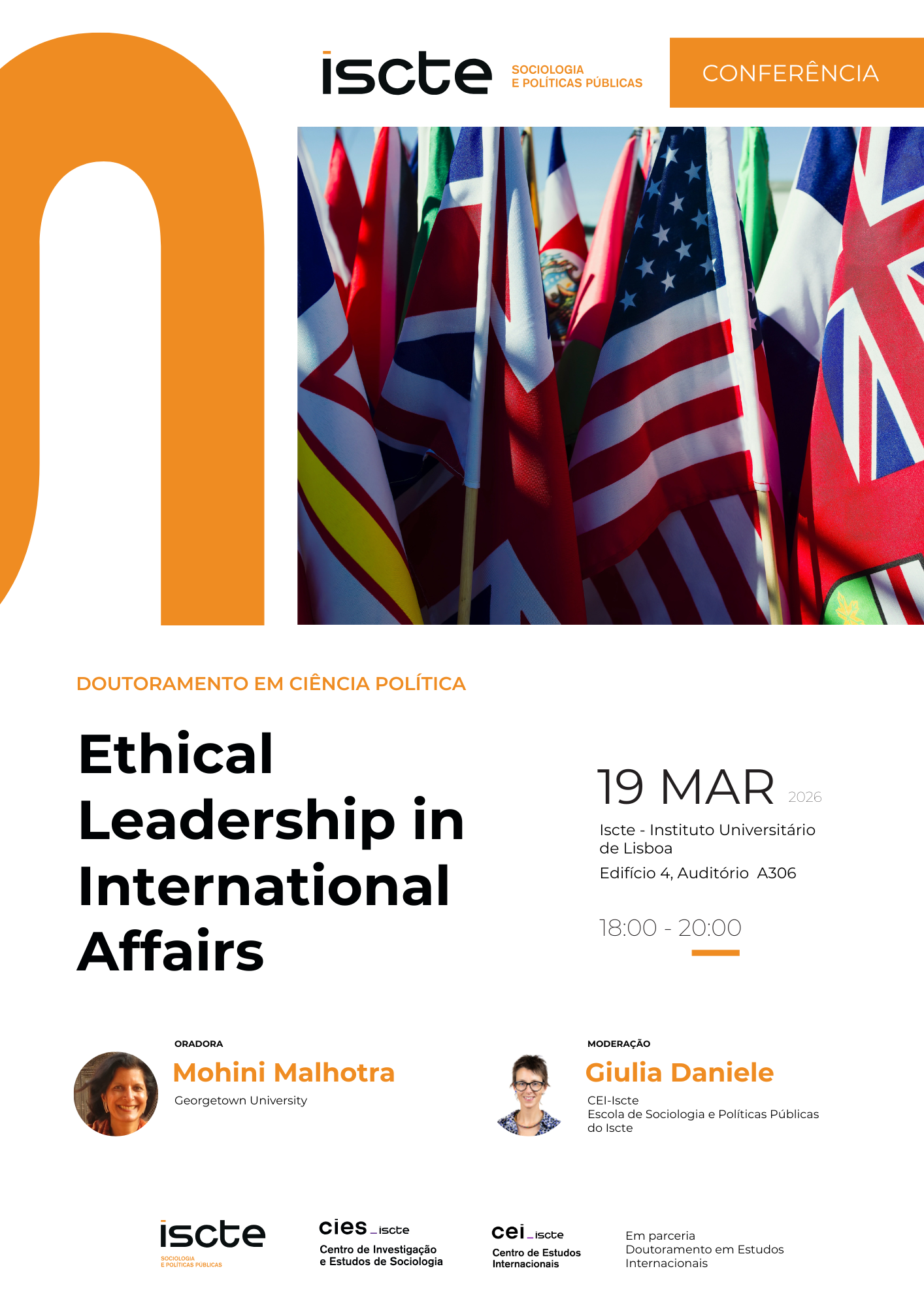 The next conference of the PhD in Political Science and the PhD in International Studies will take place on March 19, 2026, in Auditorium A306 of Building 4 at Iscte – Knowledge and Innovation.