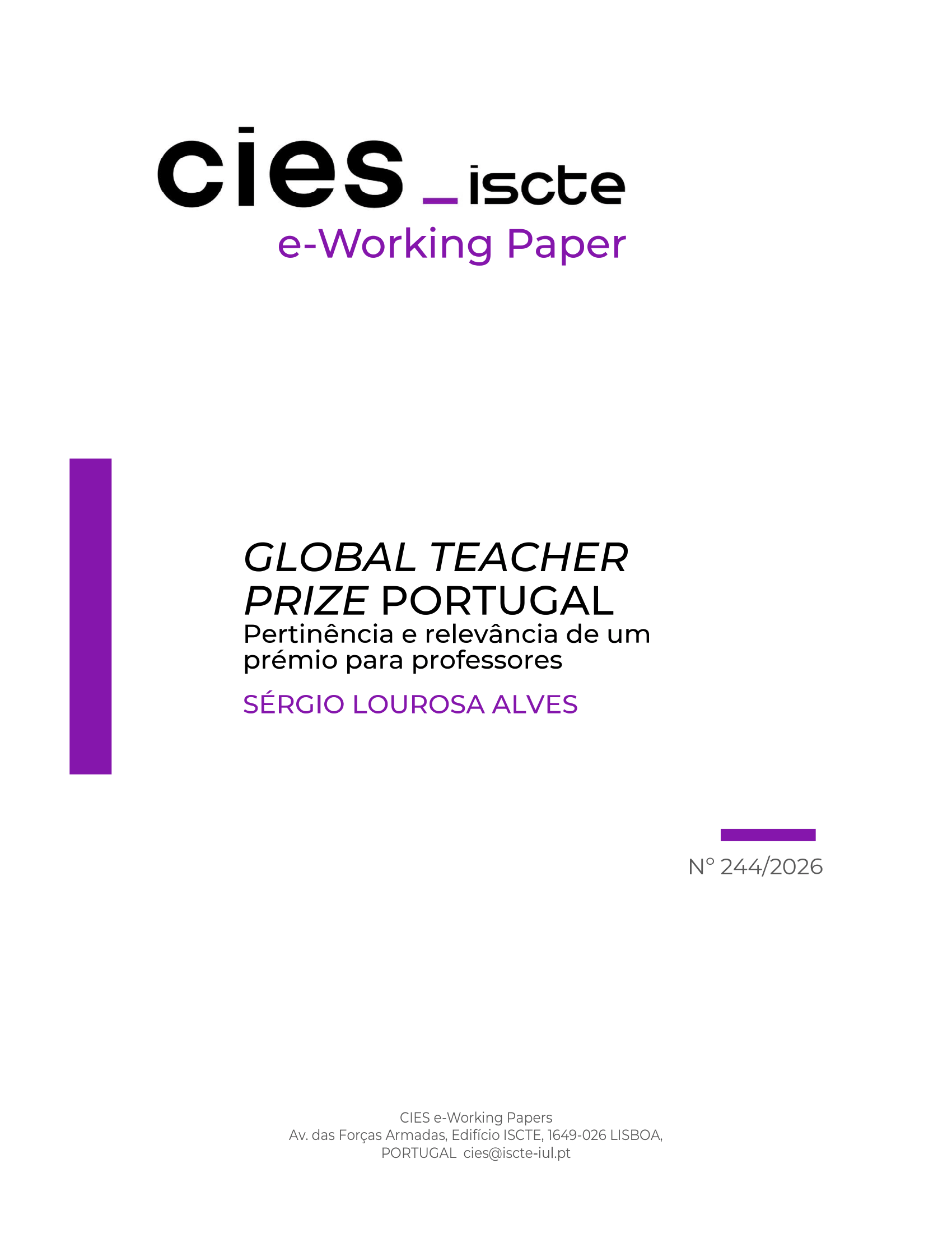 The latest CIES e-Working Paper is now available in Open Access. Entitled Global Teacher Prize Portugal: Pertinence and Relevance of an Award for Teachers, the publication is authored by Sérgio Lourosa Alves, a PhD candidate in Educational Administration and School Management Policies at Iscte – University Institute of Lisbon.