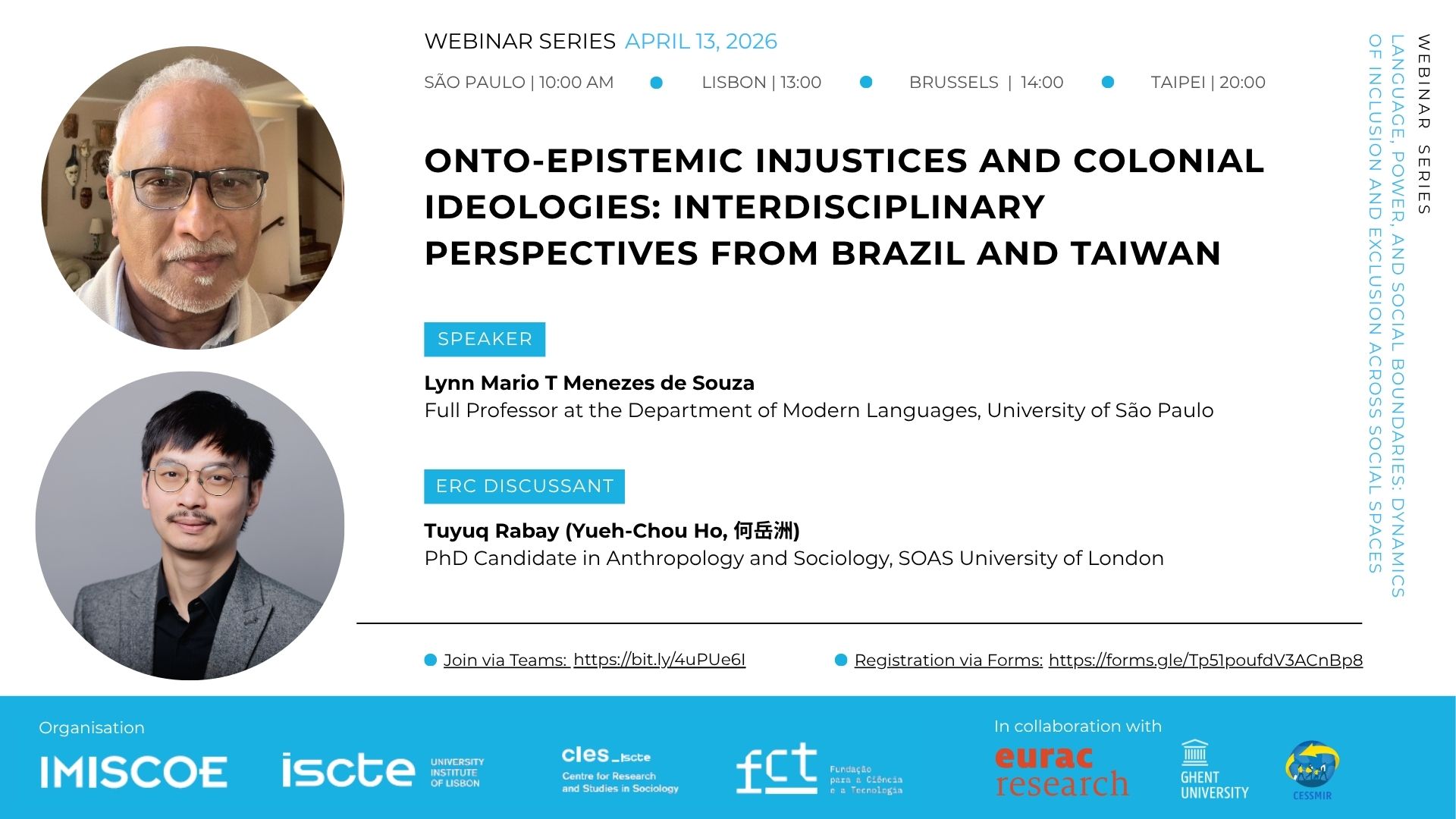 This event will take place on 13 April 2026, at 13:00 Lisbon time-GMT (10:00 AM São Paulo; 14:00 Brussels; 20:00 Taipei), online via WEBEX.