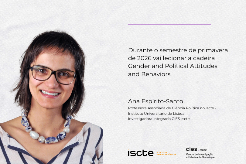 Professor Ana Espírito-Santo holds a PhD in Political and Social Sciences from the European University Institute. She is currently an Associate Professor at Iscte and a researcher at CIES-Iscte, where she coordinates the Politics and Citizenship research group. Her academic work primarily focuses on political representation, gender and politics, and comparative politics.